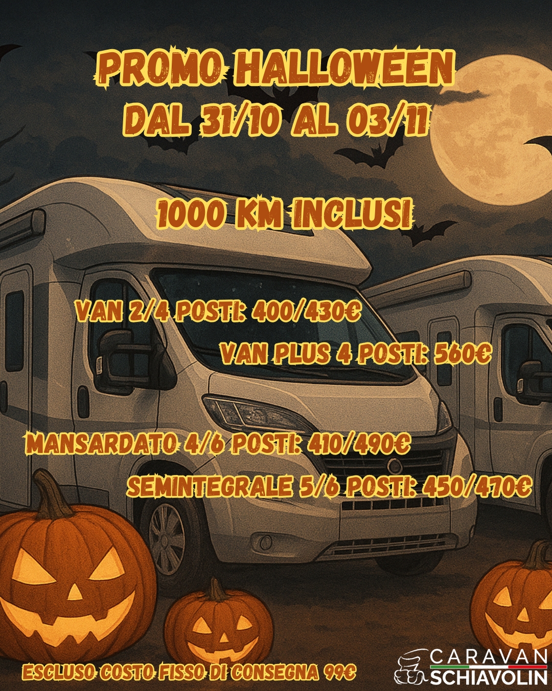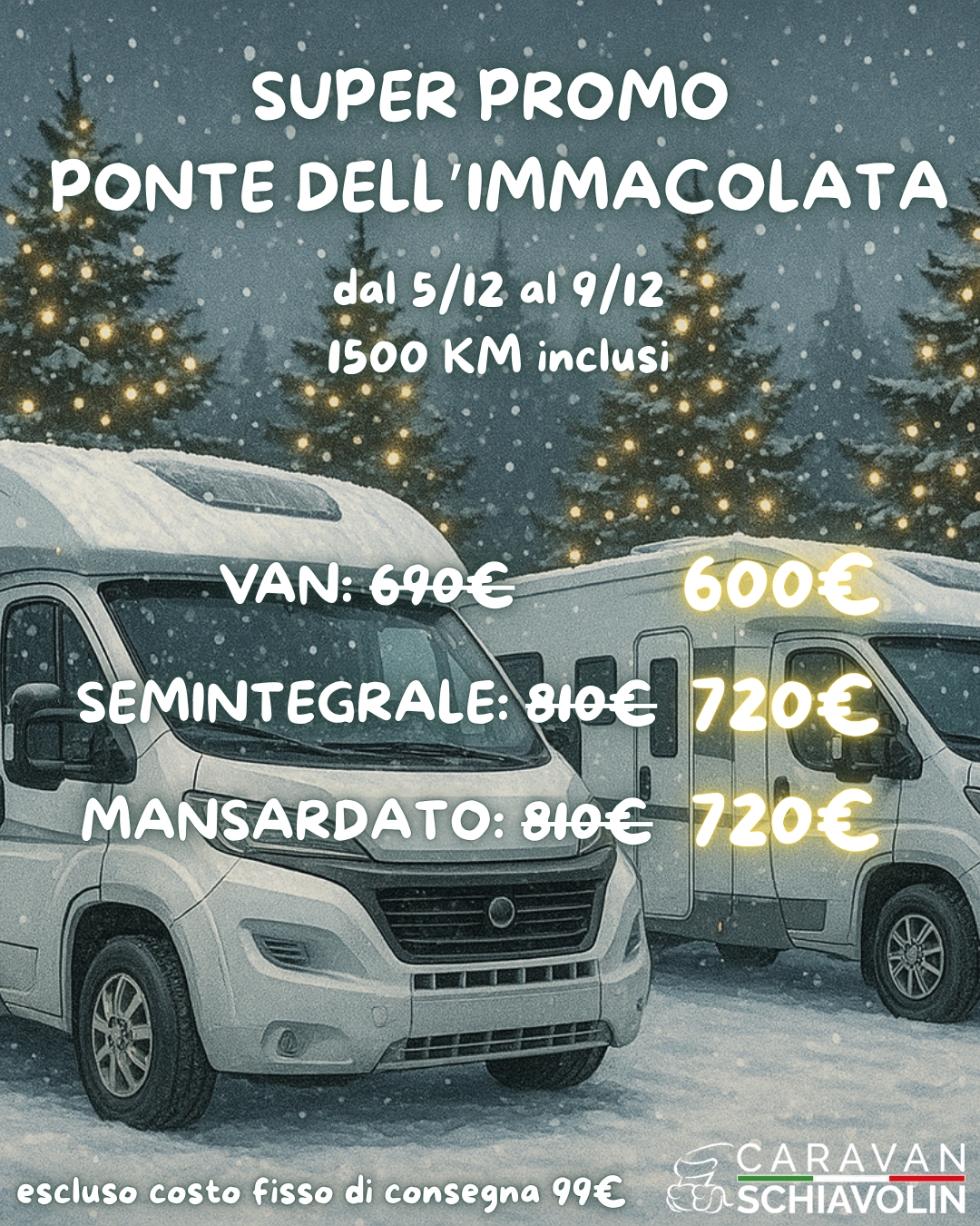 Tale prezzo è comprensivo di: sanificazione iniziale del veicolo, spiegazione del funzionamento camper, veranda, raffrescatore Viesa (ove possibile installazione), radio,