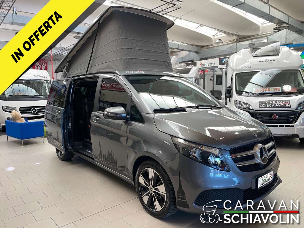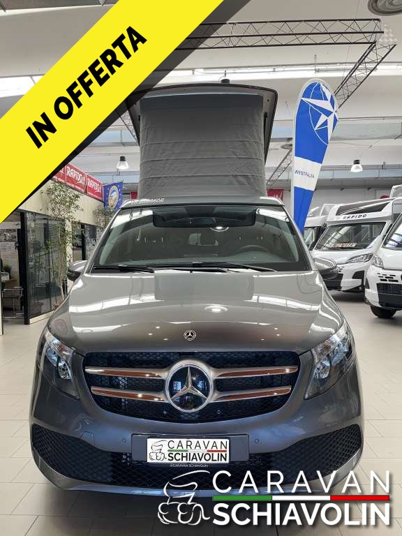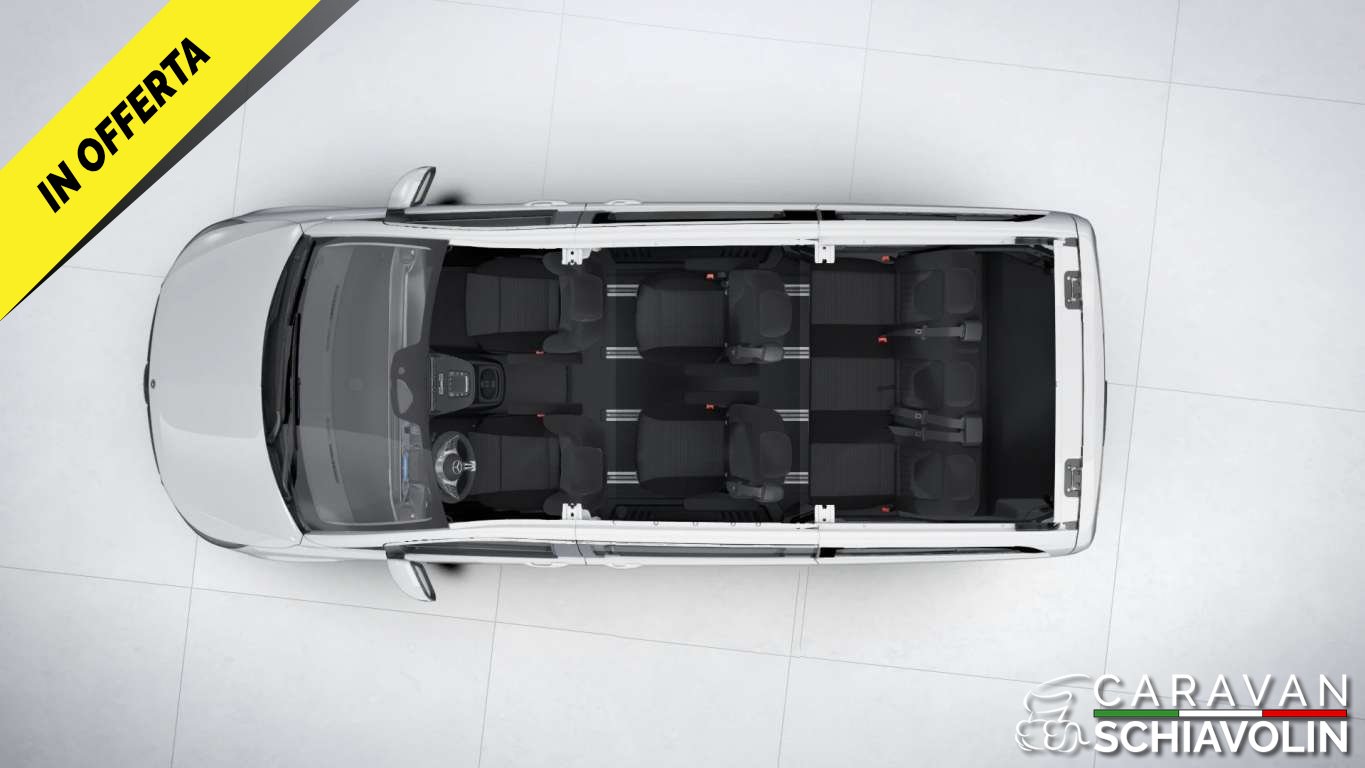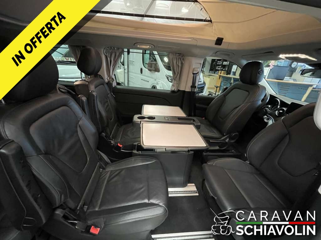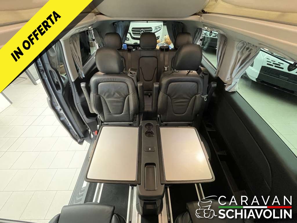 PREZZO ESPOSTO AL NETTO DI IVA. Tetto a soffietto con letto matrimoniale, Ulteriore Kit letto matrimoniale interno, Kit tendine privacy interne, Gancio traino amovibile da 2000kg, Riscaldamento interno Eberspeacher, Tavolino interno apliabile e traslabile, Cambio automatico 9 G tronic con palette al volante, Trazione integrale permanente, Cerchi in lega da 18'', Cruise control, 2 sedili in pelle aggiuntivi centrali verniciati, Tappezzeria in pelle, Volante in pelle, Vetri Privacy anteriori e posteriori, Clima automatico anteriore e posteriore, Sedili anteriori riscaldati e regolabili elettricamente, Telecamera posteriore, Sensori di parcheggio anteriori e posteriori, Sistema Mbux infontainment Mercedes con Applecarplay e Android auto, Touch pad Mercedes, Dynamic mode Mercedes, Luci interne soffuse con combinazione di colore e luci sportelli con logo Mercedes, Vernice esterna Grigio metallizzato Selenite Grey, Cruscotto stile Carbon look, Sensore luci e pioggia anteriore, Comandi radio al volante, Freno di stazionamento elettrico, Finestrini posteriori elettrici apribili a compasso, Specchi con chiusura elettrica, Chiusura portellone laterale elettrica, Chiusura baule posteriore elettrica, Lunotto posteriore apribile, Secondo treno di gomme estive con Dot 2022, Ruota di scorta, Tappetino guida,