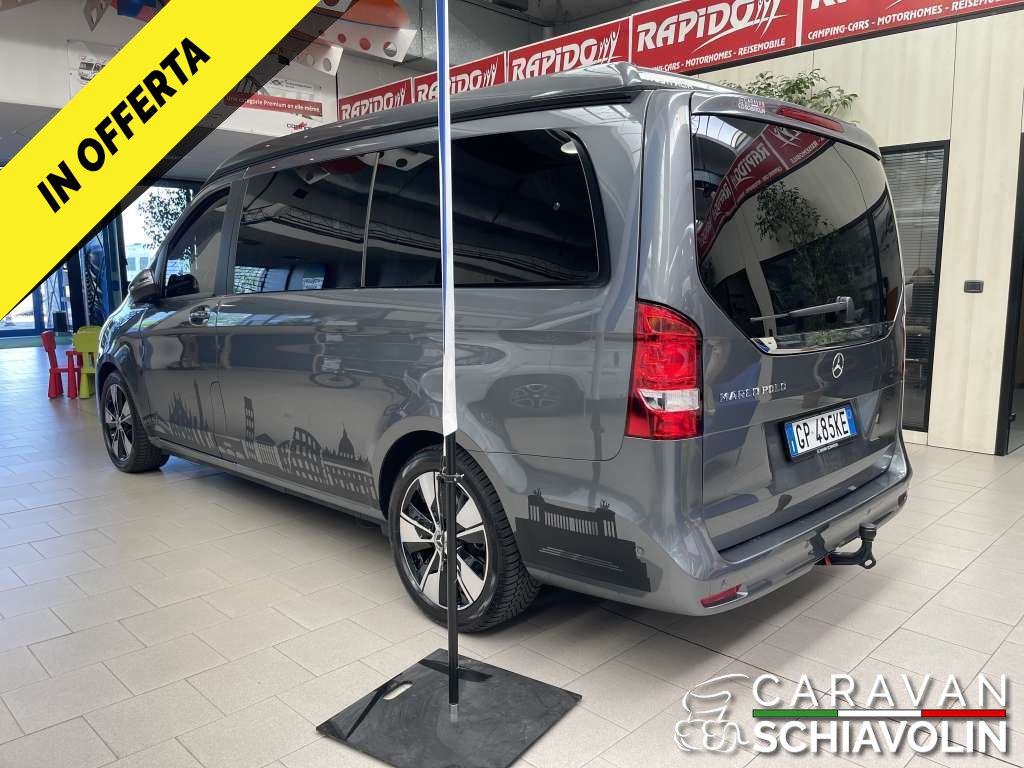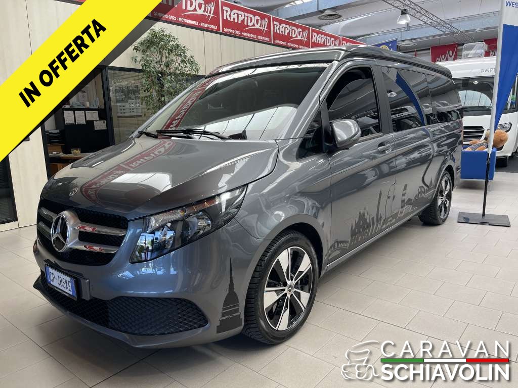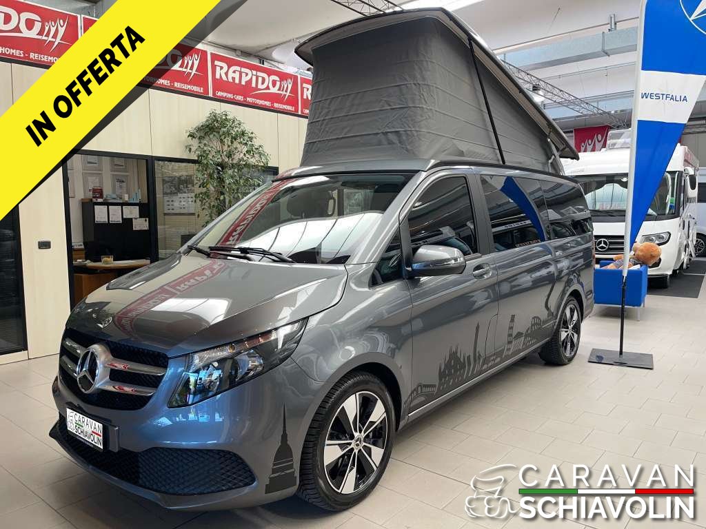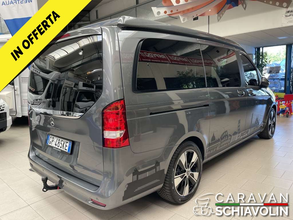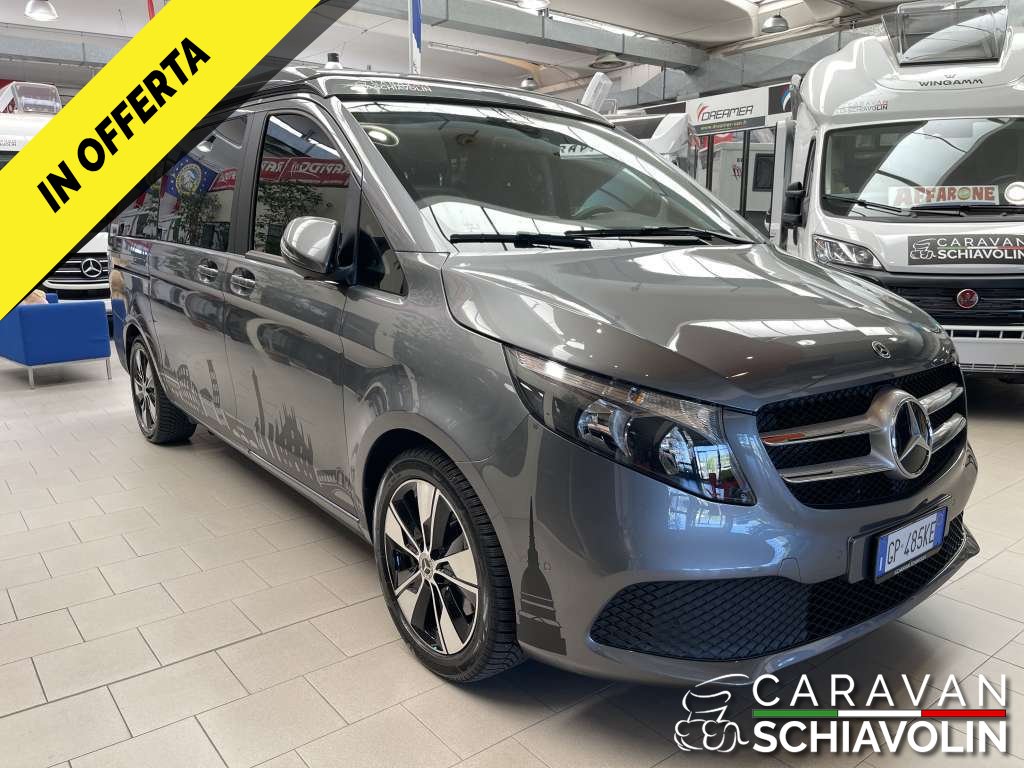 PREZZO ESPOSTO AL NETTO DI IVA. Tetto a soffietto con letto matrimoniale, Ulteriore Kit letto matrimoniale interno, Kit tendine privacy interne, Gancio traino amovibile da 2000kg, Riscaldamento interno Eberspeacher, Tavolino interno apliabile e traslabile, Cambio automatico 9 G tronic con palette al volante, Trazione integrale permanente, Cerchi in lega da 18'', Cruise control, 2 sedili in pelle aggiuntivi centrali verniciati, Tappezzeria in pelle, Volante in pelle, Vetri Privacy anteriori e posteriori, Clima automatico anteriore e posteriore, Sedili anteriori riscaldati e regolabili elettricamente, Telecamera posteriore, Sensori di parcheggio anteriori e posteriori, Sistema Mbux infontainment Mercedes con Applecarplay e Android auto, Touch pad Mercedes, Dynamic mode Mercedes, Luci interne soffuse con combinazione di colore e luci sportelli con logo Mercedes, Vernice esterna Grigio metallizzato Selenite Grey, Cruscotto stile Carbon look, Sensore luci e pioggia anteriore, Comandi radio al volante, Freno di stazionamento elettrico, Finestrini posteriori elettrici apribili a compasso, Specchi con chiusura elettrica, Chiusura portellone laterale elettrica, Chiusura baule posteriore elettrica, Lunotto posteriore apribile, Secondo treno di gomme estive con Dot 2022, Ruota di scorta, Tappetino guida,