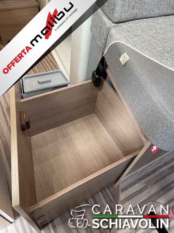 PACCHETTO CELLULA € 1.755,00 (comando digitale Truma CP Plus, rivestimento interno climatico in microfibra sul soffitto, serbatoio acque scarico incassato e isolato, sistema di ancoraggio vano bagagli, illuminazione diffusa a LED della zona giorno, upgrade cucina: frontali color bianco perla, materassi letti posteriori a 7 zone)