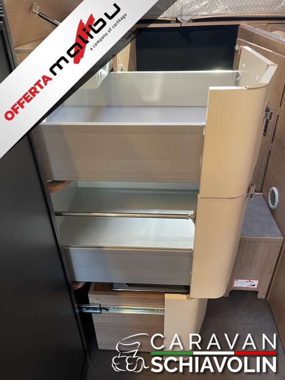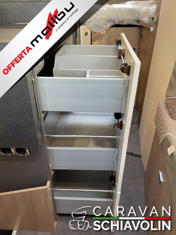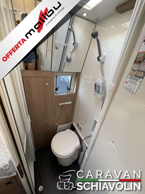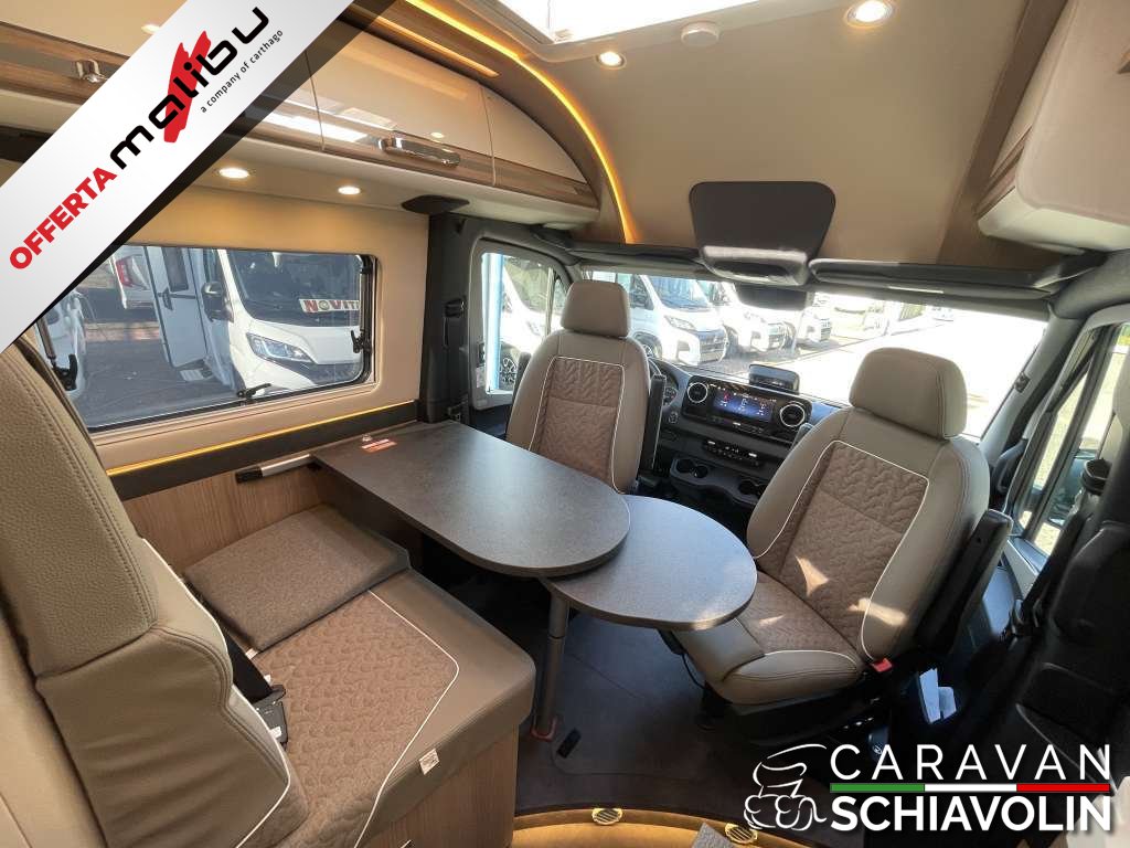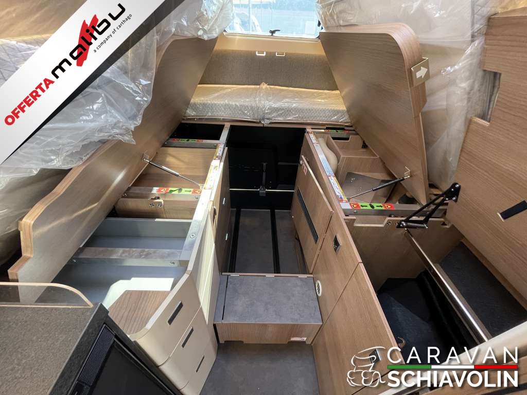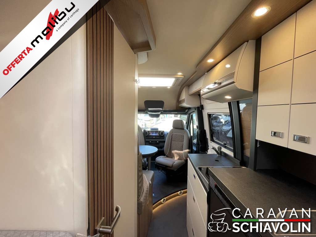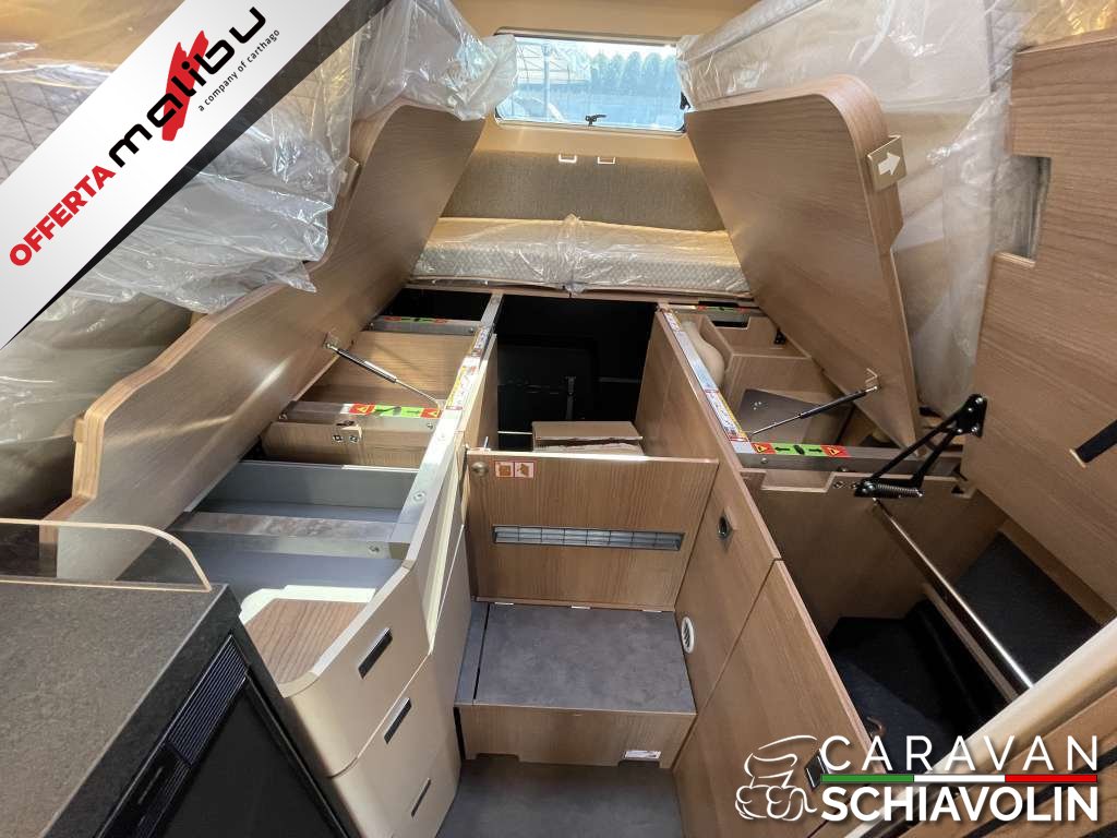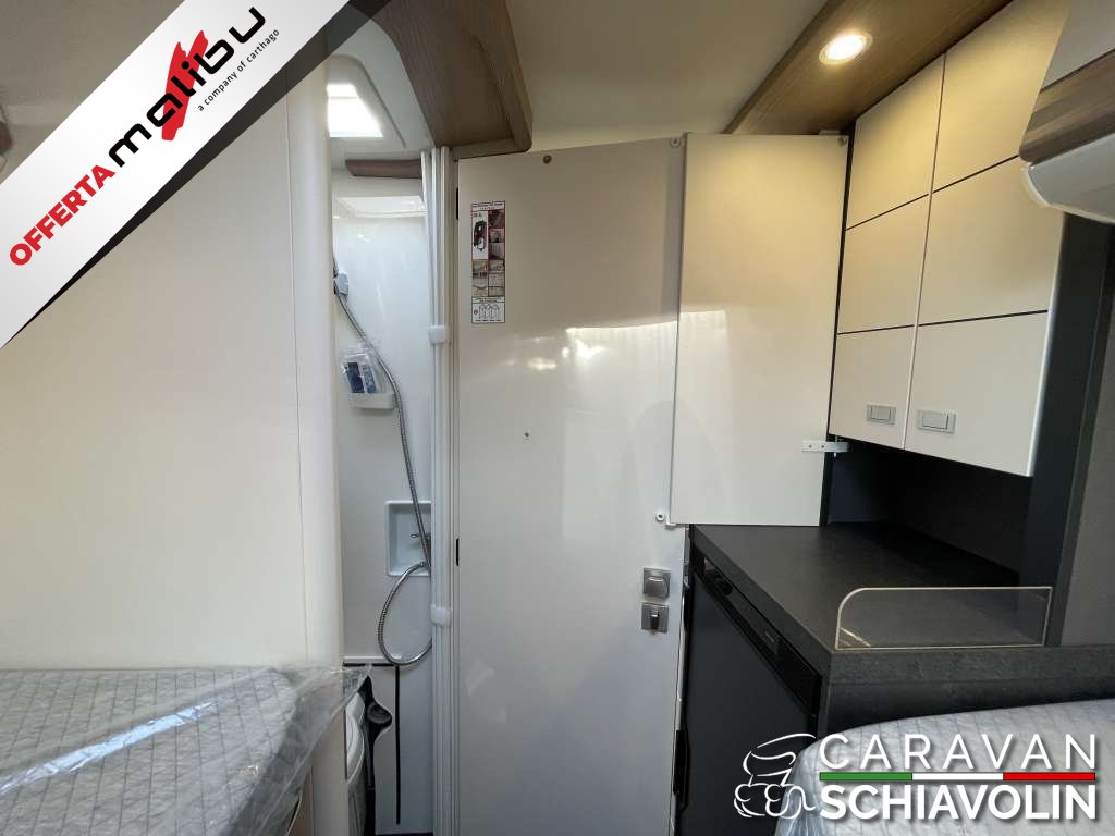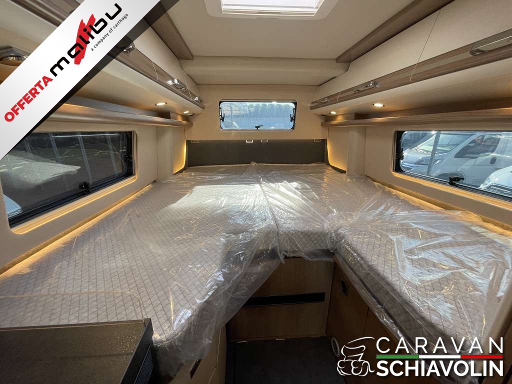 PACCHETTO CELLULA € 2.350,00 (Pannello comandi digitale Truma CP Plus, Zanzariera dietro la porta scorrevole, Rivestimento tetto con strato di microfibra coibentante, Serbatoio acque chiare e acque grigie isolato, serbatoio acque chiare con riscaldamento aggiuntivo, Rifinitura cucina, Applique da soffitto zona giorno con illuminazione diffusa LED indiretta, Materassi di qualità in schiuma fredda nel letto posteriore)