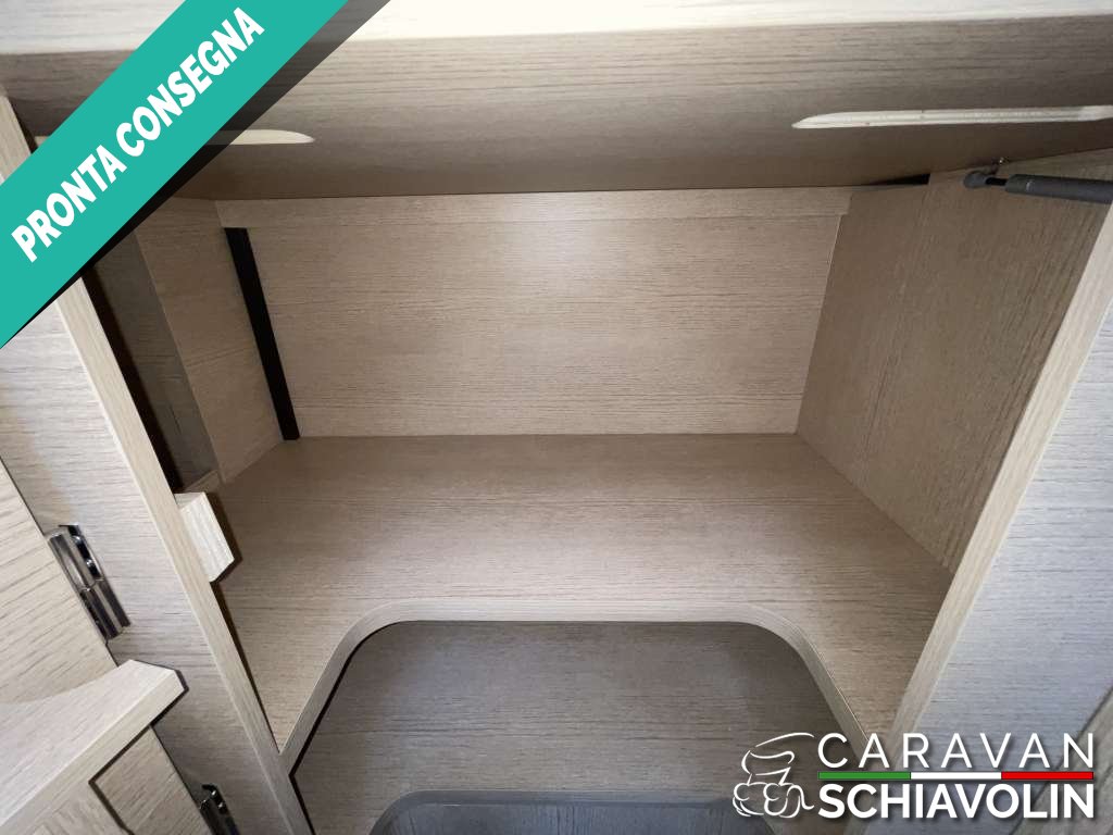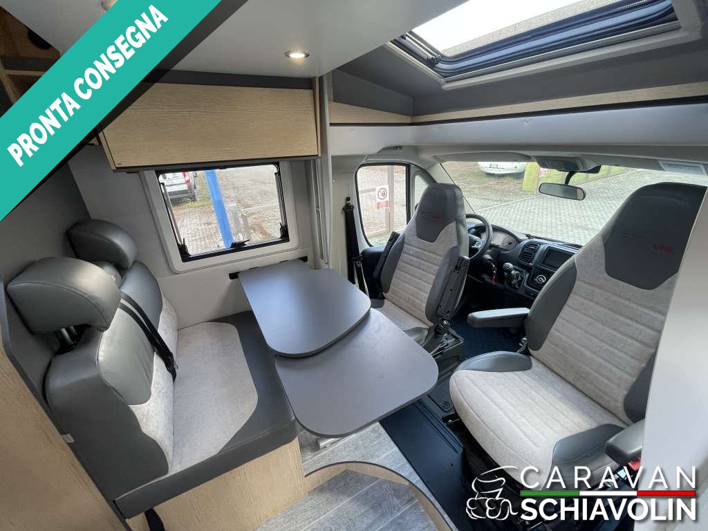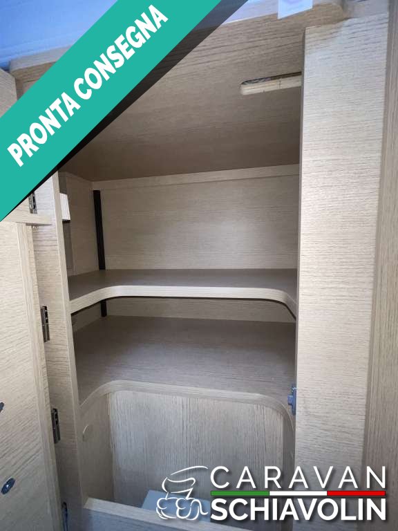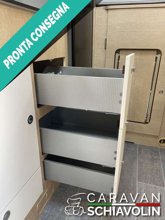 Il camper perfetto per chi cerca maneggevolezza e comfort in meno di 6 metri, offre ambienti ben progettati con letto matrimoniale trasversale posteriore, bagno compatto e funzionale con la parete specchio lavello che ruota creando un grande box doccia, presente anche un grande frigo e una zona giorno pratica e luminosa. La dinette si trasforma in un ulteriore posto letto, mentre il letto basculante anteriore elettrico consente di ospitare comodamente fino a quattro persone. Il garage posteriore, accessibile da entrambi i lati, offre uno spazio di carico sorprendente.