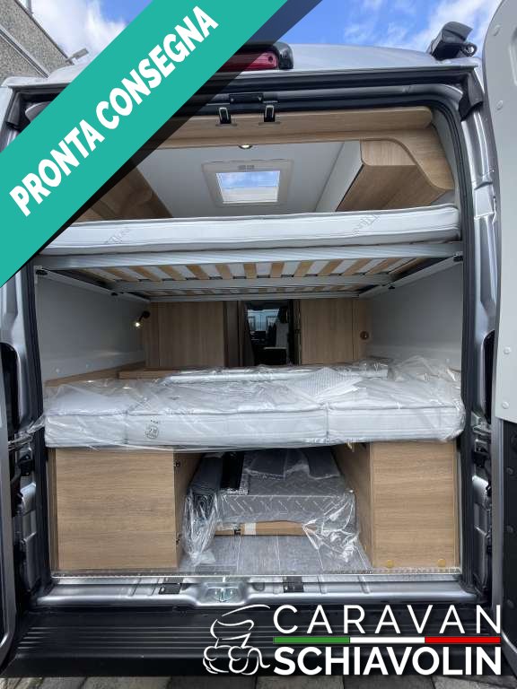 PACK PRIVILEGE (Paraurti verniciato in tinta, Fari, fendinebbia, Radio 6,8'' (AppleCarPlay e AndroidAuto), Comandi al volante, Retrocamera HD, Zanzariera porta ingresso, Oscuranti plissettati cabina, Letto singolo supplementare dinette, Foderine cabina in tinta con la tappezzeria, Gradino esterno elettrico)
