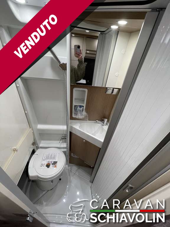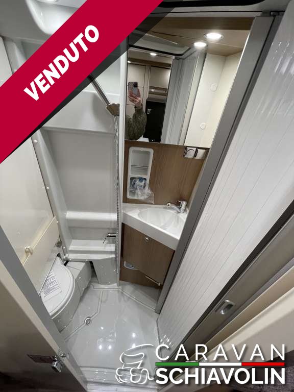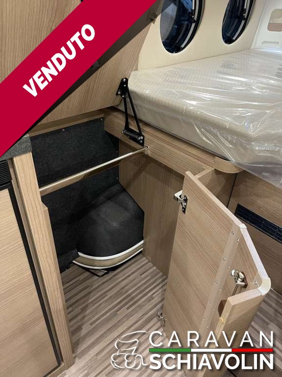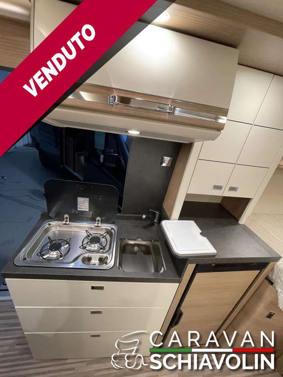 PACCHETTO CELLULA € 1.530,00 (Rivestimento interno climatico in microfibra sul soffitto, Aggiornamento centro cucina, Materasso in schiuma fredda di alta qualità del letto posteriore, Pannello comandi digitale Truma CP Plus, Sistema di ancoraggio vano bagagli, Serbatoio acque grigie incassato e isolato nell’alloggiamento)