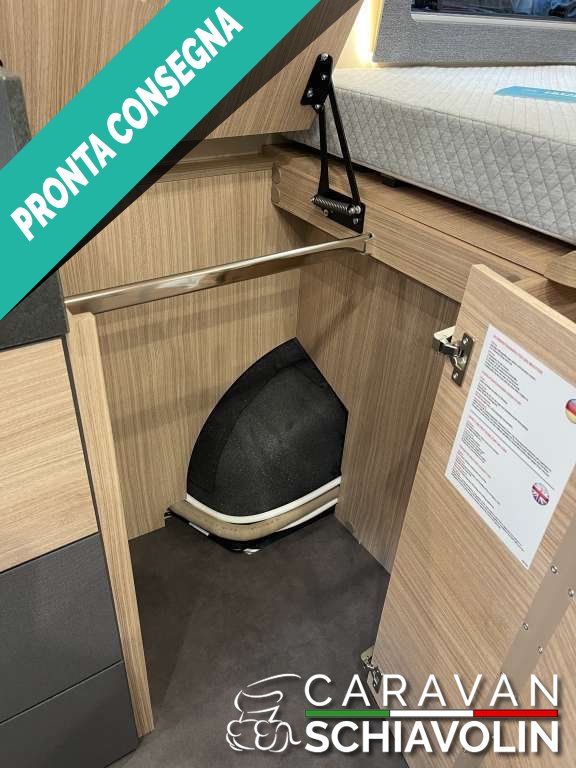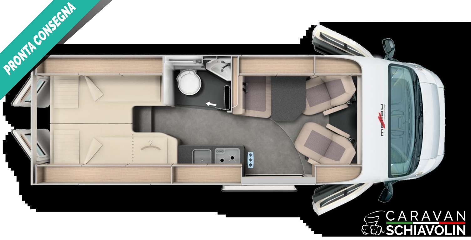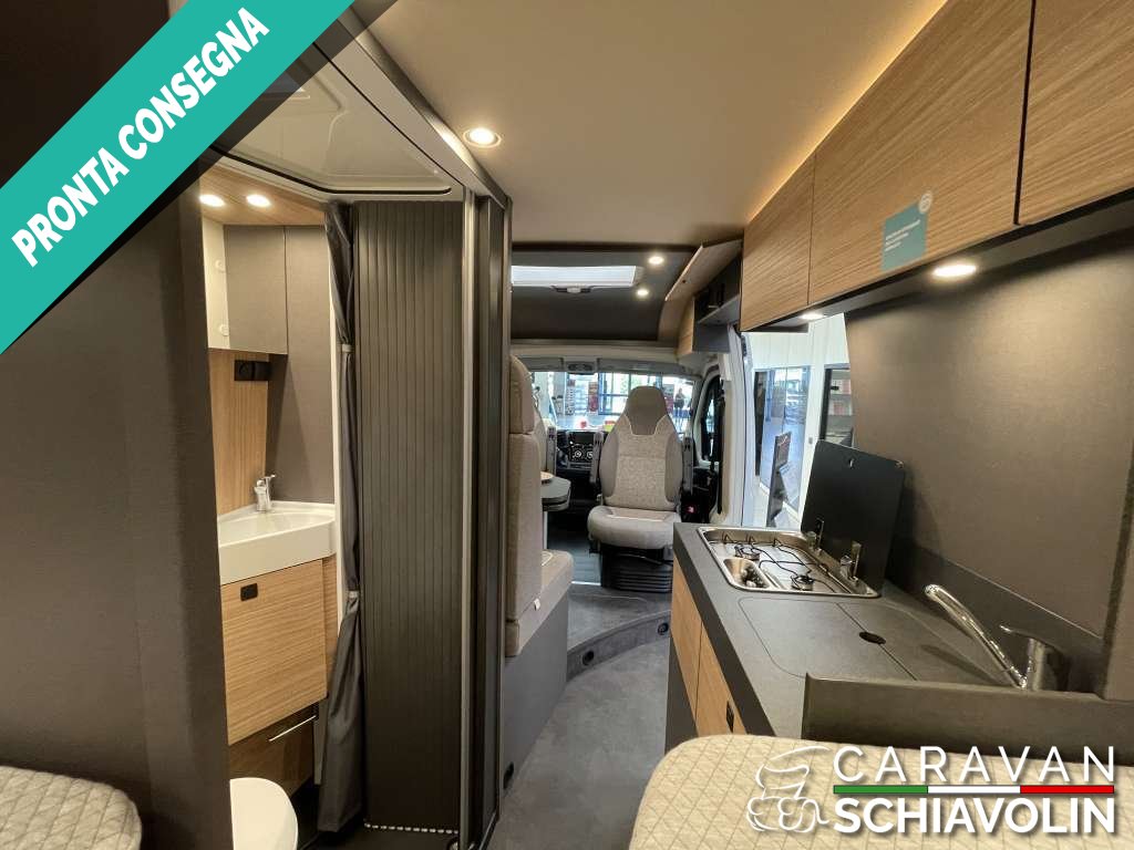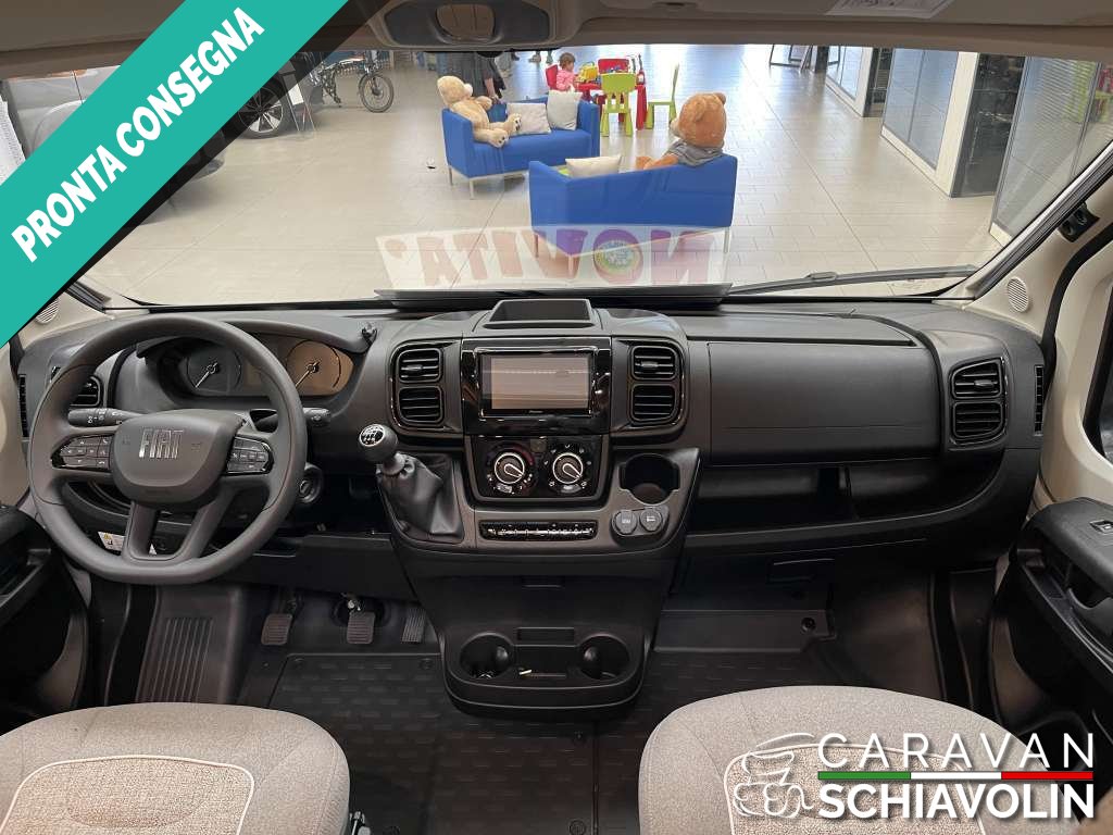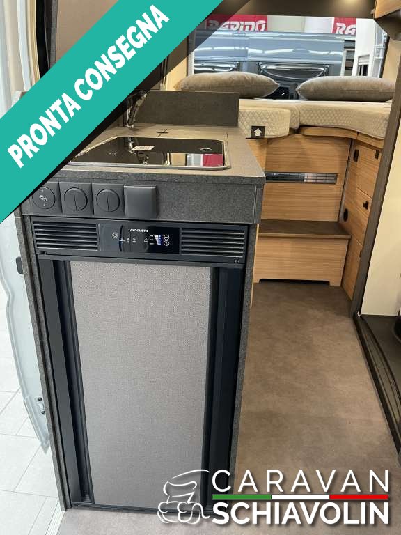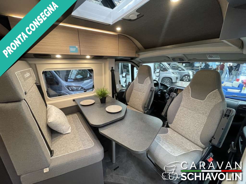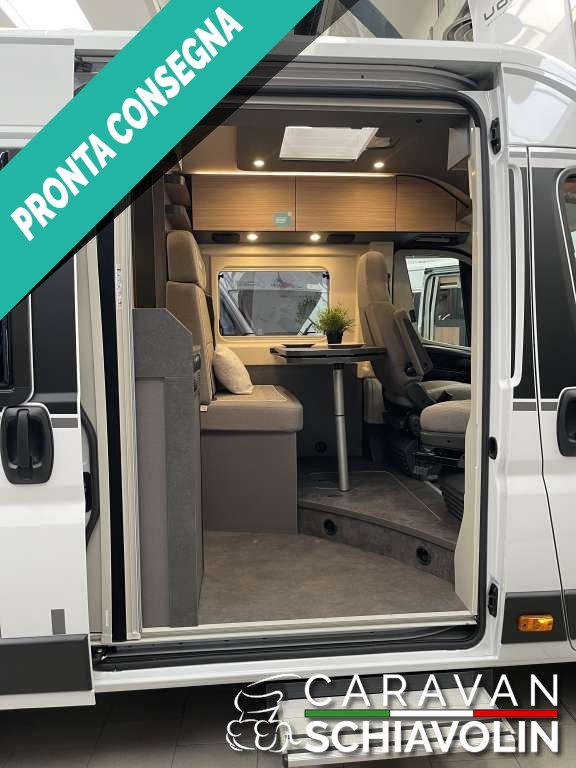 Linea di equipaggiamento ACTIVE € 6.910,00 (Sistema di assistenza al parcheggio con sensori nel retro, Serbatoio carburante da 90 litri, Booster di ricarica, Sistema di oscuramento della cabina di guida su parabrezza e finestrini laterali, Predisposizione radio con antenna a tetto e DAB+, altoparlanti (4x) 34), Sedile passeggero regolabile in altezza, Sedili pilota rivestiti con la stessa tappezzeria della zona giorno incl. braccioli imbottiti, Zanzariera dietro la porta scorrevole, Specchi retrovisori regolabili e riscaldabili elettricamente, Specchi retrovisori a chiusura elettrica, Cornice dei fari in colore nero, Volante multifunzione (con tasti di comando radio a distanza), Predisposizione gancio traino, Predisposizione retrocamera, Rivestimento interno climatico in microfibra sul soffitto, Materasso in schiuma fredda di alta qualità nel letto posteriore, Pannello comandi digitale Truma CP Plus, Sistema di ancoraggio vano bagagli, Radio/Moniceiver Pioneer 6,8" incl. DAB+, Colore esterno bianco, Pacchetto prese: 3x presa USB / 2x presa da 230 V)