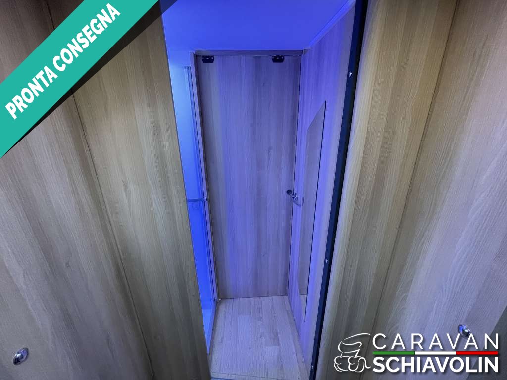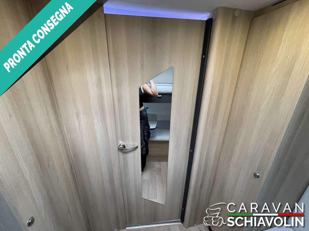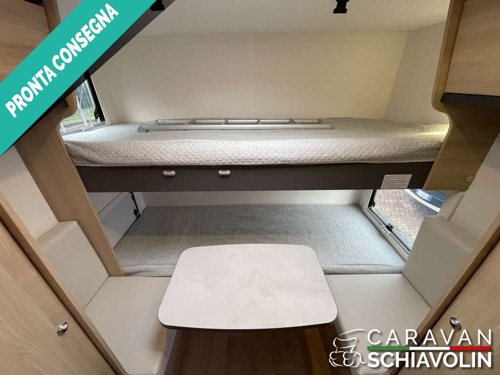 PUNTI DI FORZA = Sistema di ancoraggio ISOFIX, Camera per bambini con 3 possibili letti, 7 posti letto di cui 2 opzionali:, - Letti a castello 2 x (81 x 217 cm), - Trasformazione del letto dinette della camera da letto posteriore in un letto matrimoniale (133 x 217 cm), - Letto cabina a scomparsa (140 x 190 cm), - Letto matrimoniale dinette supplementare (130 x 200 cm) (opzionale), Armadio doppio, Frigorifero da 145 litri, 5° posto omologato in viaggio