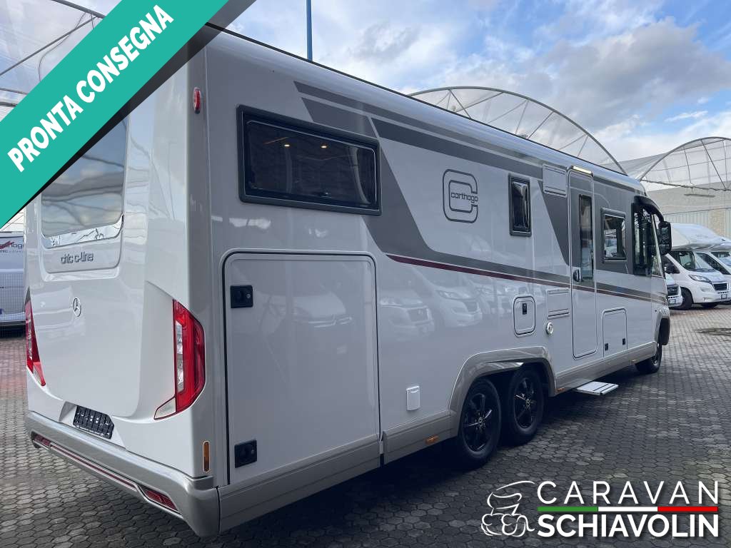 PACCHETTO SUPER € 14.365,00 (Climatizzatore automatico MB THERMOTRONIC, Tempomat - Cruise Control, Booster di ricarica, Assale anteriore con portata maggiorata, Volante in pelle con tasti multifunzione (con cambio con pomello del cambio in pelle), Strumento combinato con display a colori, Sensore pioggia, Freno di stazionamento elettrico, Sedili in cabina con regolazione dell’altezza e dell’inclinazione (avanti/indietro), Piedini di stazionamento posteriori a manovella per stabilizzare il veicolo da fermo, Sistema multimediale MBUX 10,2" incl. navigatore e DAB+, Sistema di riconoscimento segnaletica stradale, Specchietti in stile bus “Carthago best view” con illuminazione di accesso, regolabili e riscaldabili elettricamente, Porta cellula XL "premium two 2.0" (L. 63 cm) con dopppia chiusura finestra e zanzariera, Chiusura centralizzata porte cabina e cellula con funzione "coming home", Upgrade garage per scooter con feltro agugliato, reti portabagagli, sistema di ancoraggio, Aerazione toilette SOG tramite camino sul tetto, Truma DuoControl CS, Mobile bar di design con portabicchieri e set bicchieri sopra la cucina, Presa USB nel pensile sopra il letto posteriore, Predisposizione impianto fotovoltaico, Predisposizione impianto SAT, Predisposizione retrocamera (lente singola), Sistema di retrocamera con lente singola, con monitor a colori da 7" su un lato del cruscotto)