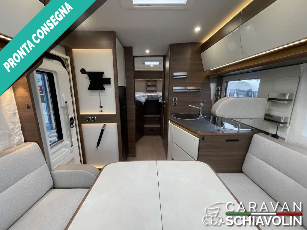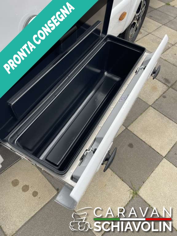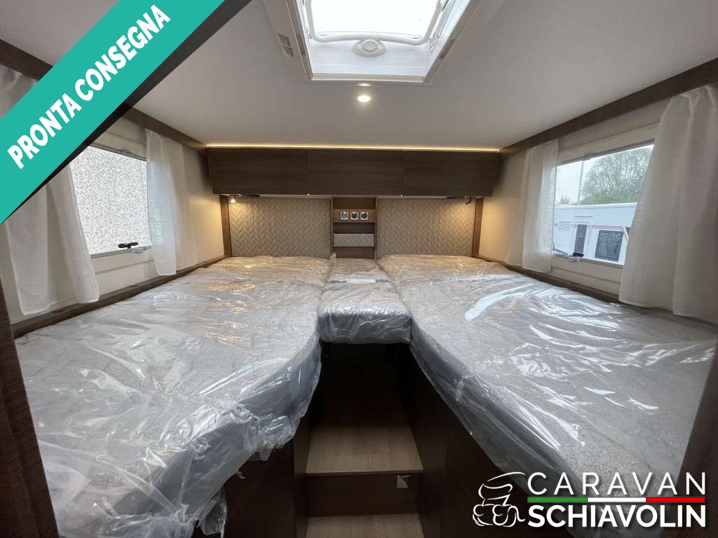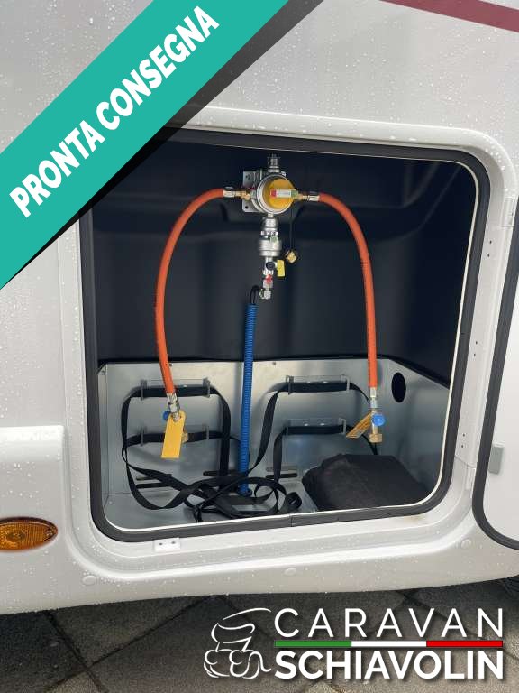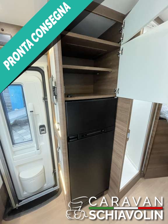 PUNTI DI FORZA = Grande salotto aperto con divanetti contrapposti e braccioli, Letti gemelli trasformabili in letto matrimoniale trasversale, Guardaroba ai piedi dei letti facilmente accessibili, Portaoggetti nella parte centrale della camera, Grande frigorifero AES 156 L, Bagno privato, Doccia indipendente, Grande gavone garage da 126 cm di altezza, Vano portaoggetti interno, Porta cellula XL: 600 mm