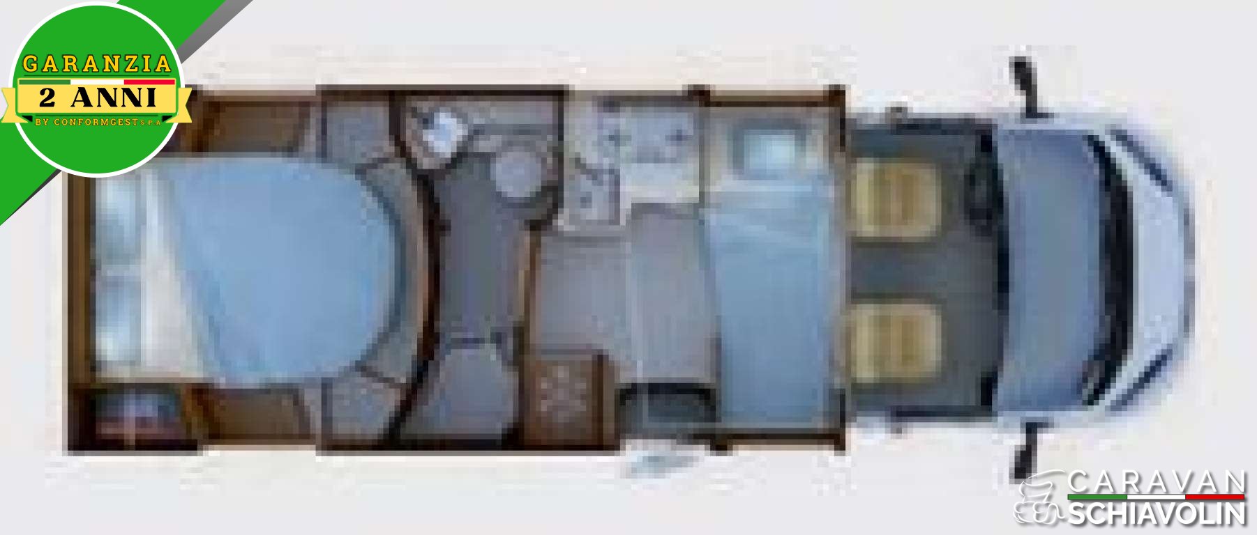 PACK SELECT (Camera retromarcia con visione notturna e audio, Stazione multimediale KENWOOD ® con schermo 6.2 e autoparlanti anche in cellula, Airbag passeggero, Regolatore di velocita cruise control, retrovisori elettrici e sbrinanti, sedili cabina regolabili in altezza, nuova tendina parabrezza isotermica alto/basso a scomparsa a doppio plisse, porta cellula con finestra fissa e pattumiera integrata, zanzariera porta cellula, cappa aspirante con luci Led, scambio automatico bombole gas DuoControl con tubi Securmotion). Prezzo con permuta € 62.900,00