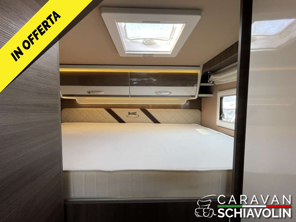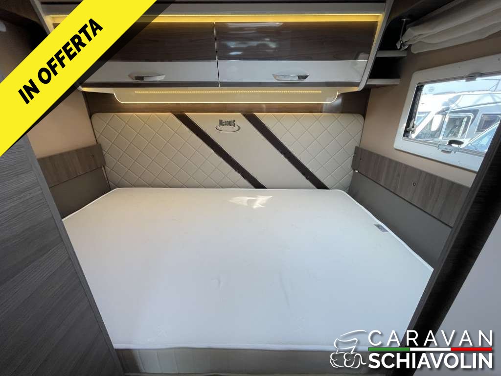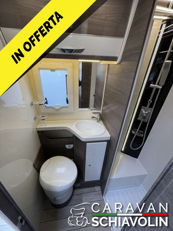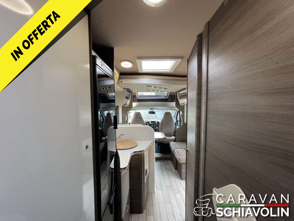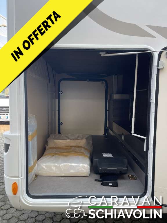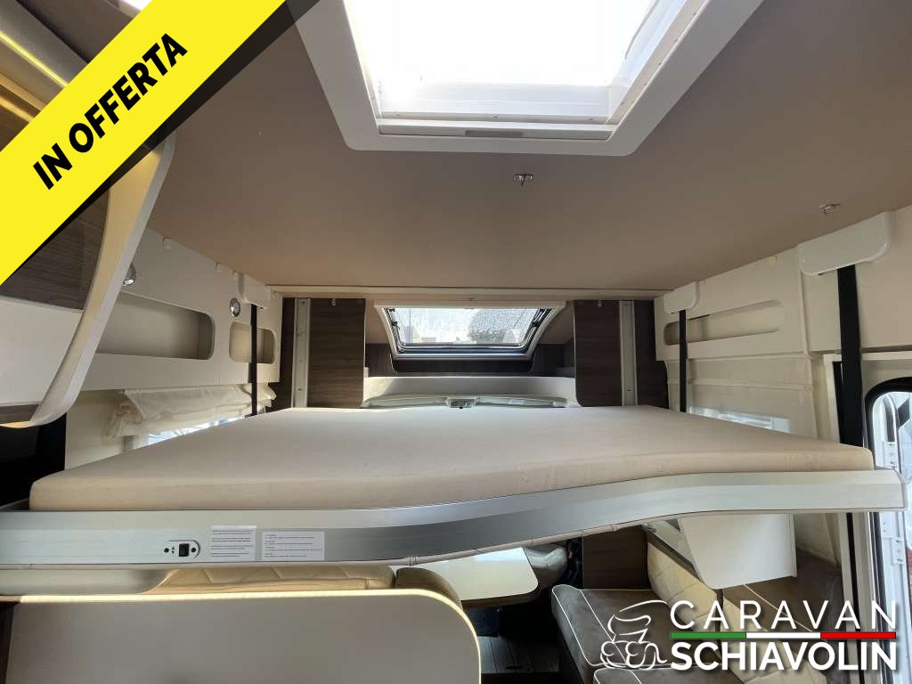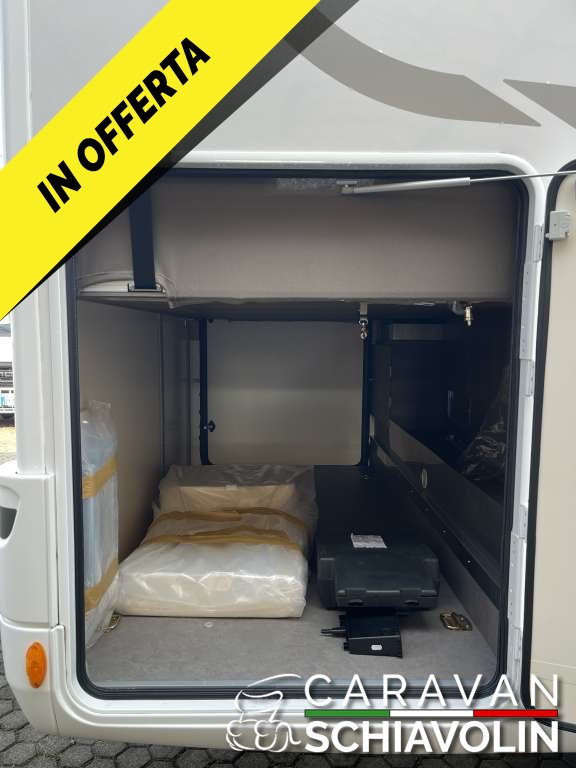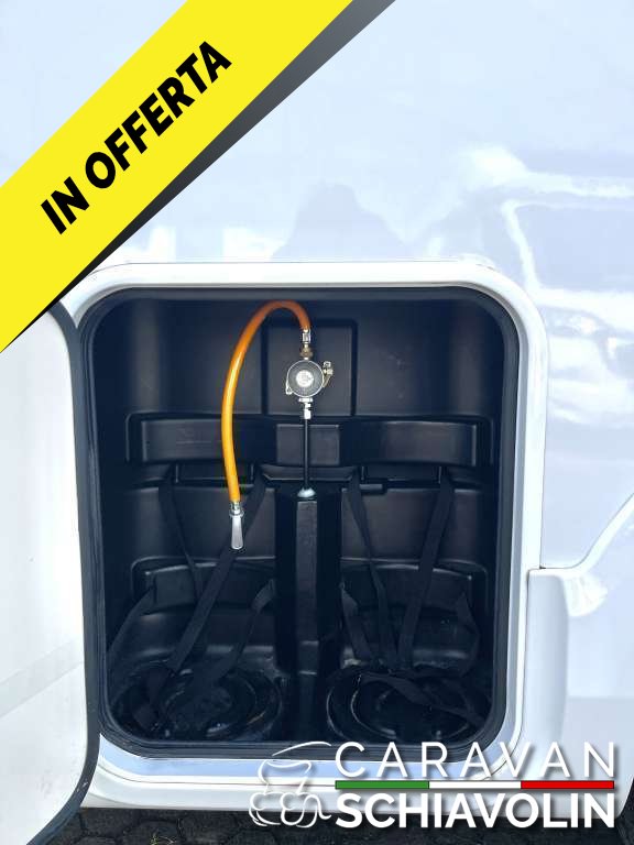 Veranda, Pannello solare, Doppia batteria con Battery Duo System, Clima cabina guida, Antifurto volumetrico e perimetrale, Retrocamera con display a specchietto, Radio CD Usb, Safedoor su porta ingresso e portelloni garage, Letto posteriore basculante, Letto anteriore basculante elettrico, 5° posto letto in dinette, Zanzariera porta cellula, Staffa TV, Prese Usb, Oblò skyview cabina, Oscuranti plissettati cabina, Cerchi in lega 16", Fendinebbia, Cruise control, Traction Plus, Hil hold e descent, Vetri elettrici cabina, Specchietti elettrici cabina, Sedili girevoli cabina. Prezzo con permuta € 68.900,00