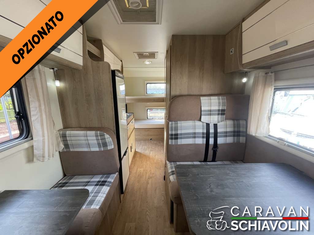 Gancio traino amovibile da 2000kg, Veranda, Pannello solare, Radio 2 din con retrocamera integrata, Frigorifero grande da 140 lt, Portabici per 3 bici, Truma combi Diesel con Cp plus, Clima in cabina guida, Cerchi in ferro da 16'', Serbatoio acque grigie coibentato, Oscuranti plissettati in cabina guida, Cruise control, Zanzariera porta cellula, Hill discent, Abs, Asr, Rom, Doppio Airbag, Fari fendinebbia, Sedile passeggero cabina guida con piastra girevole, Stacca batteria servizi, Regolatore gas con filtro e tubo securmotion, Luce esterna led, Gradino porta cellula manuale, Porta cellula con finestra, Zanzariera porta cellula, Regolazione vetri cabina guida elettrica, Tappetino cabina guida, Prezzo con permuta €46.500,00