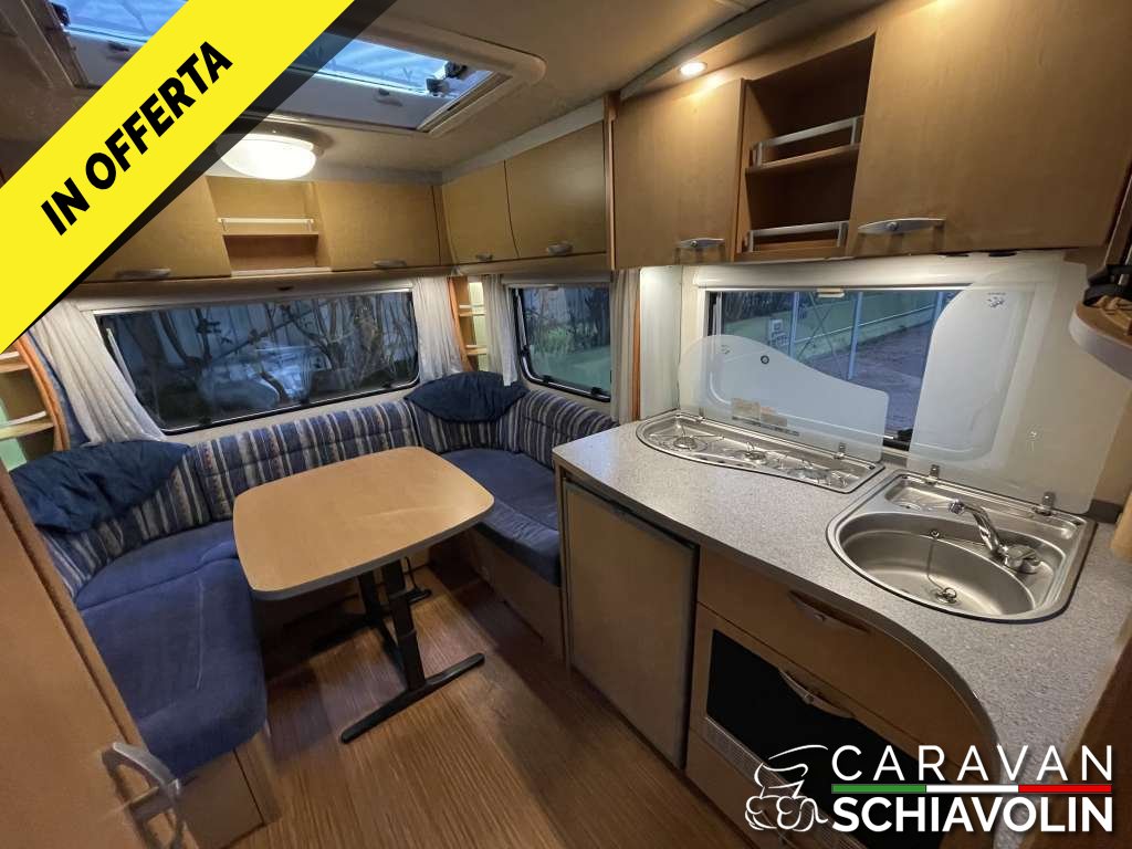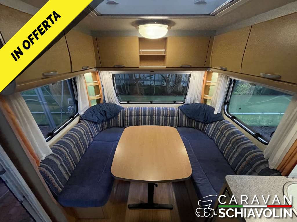CARAVAN ROULOTTE DI PRODUZIONE TEDESCA, CON LETTO ALLA FRANCESE E DINETTE POSTERIORE A GIRO CON 6 POSTI A PRANZO, TRASFORMABILE IN LETTO MATRIMONIALE.