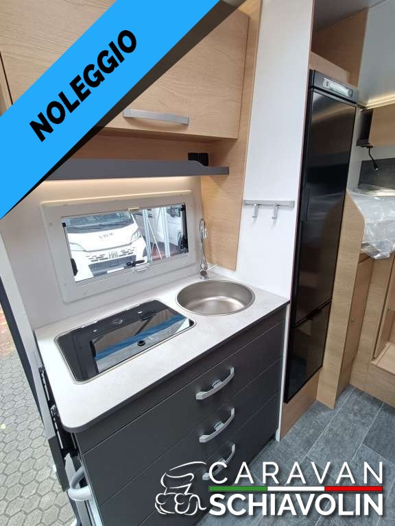 Veranda, Viesa holiday 3s condizionatore vaporativo a 12v, Stufa Combi 4000 Diesel, Letto basculante elettrico, 5° posto omologato e Letto supplementare in dinette, Radio 12" (Ford), Retrocamera, Sensori parcheggio anteriori (Ford), Maxi oblò skyview, Oscurante plissettato in cabina, Porta ingresso XL a 2 punti con finestra e chiusura centralizzata, Attacchi isofix in dinette, Cerchi in lega da 16", Estintore e kit di primo soccorso